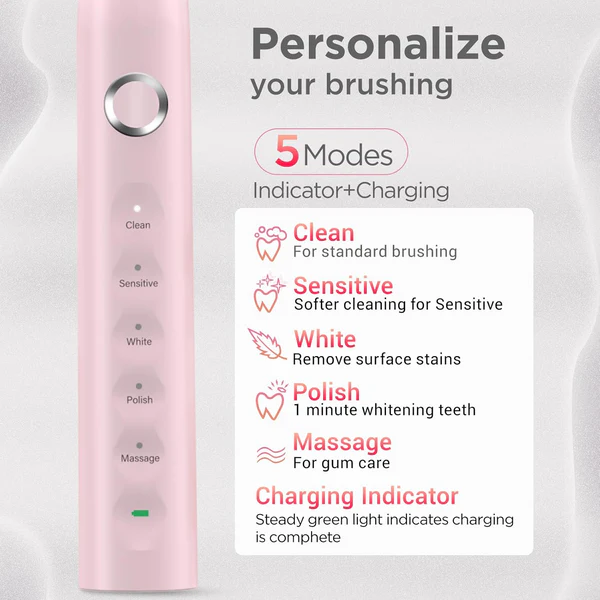 اختيار اللون الوردي في فرشاة الأسنان الكهربائية Rtauys S5 ليس مجرد مظهر جمالي، بل هو وسيلة لإضافة لمسة شخصية على أدواتك اليومية. الإصدار الوردي مناسب للنساء والفتيات أو أي شخص يفضل الألوان العصرية التي تعكس أسلوبه الخاص، مع الحفاظ على نفس الكفاءة العالية الموجودة في باقي إصدارات S5.